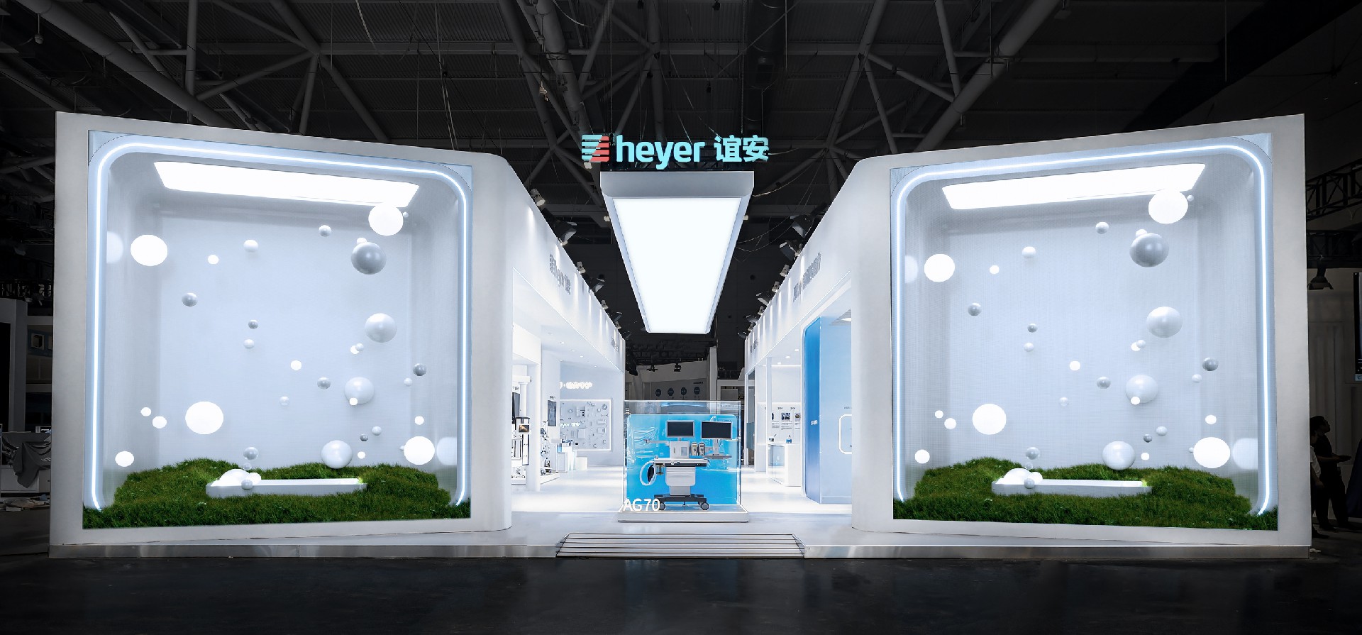谊安医疗是国内领先的麻醉和呼吸医疗设备研发制造龙头企业。方世设计以“一呼一吸,谊安守护”为此次展馆的设计概念。呼吸是我们感知生命的唯一方式,是我们与生命科学共鸣的契合点,而谊安的呼吸疗愈产品赋予了我们无界的呼吸体验,在一呼一吸之间,感受生命无限的美好与价值。