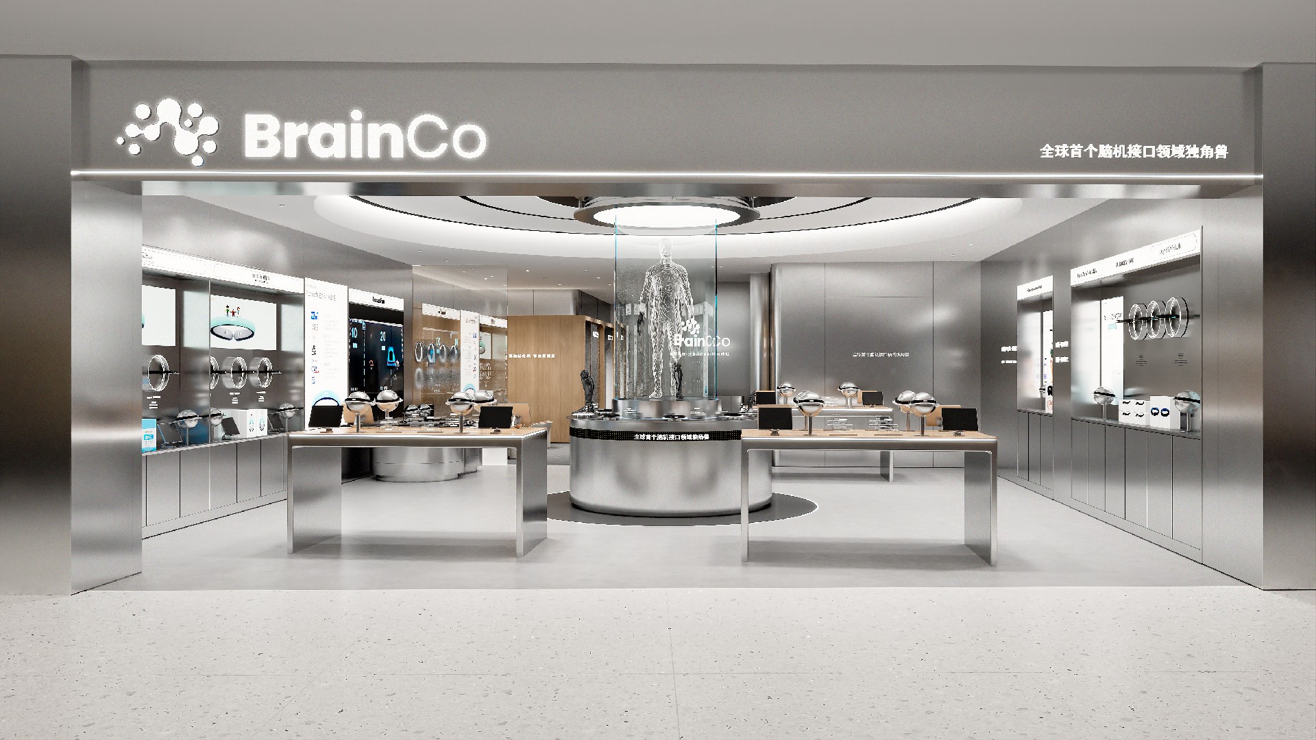 哈尔滨店空间对称布局、规整有序,根据产品划分功能区为脑机剧场区、专注力体验区、接待服务区,与展示台与墙柜综合陈列,给予消费者更舒适宽敞的体验尺度。