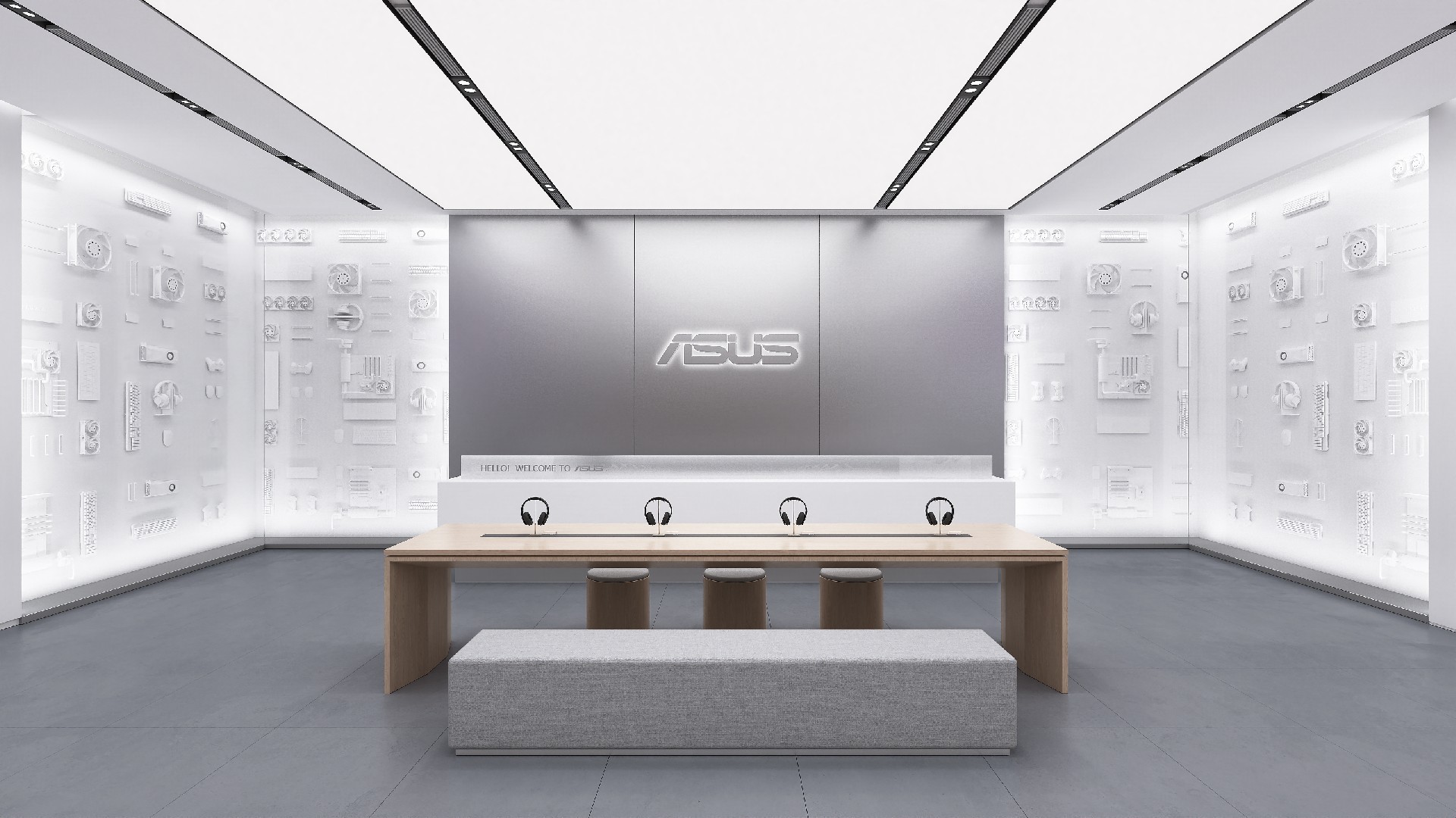 我们提取了两个华硕的品牌特性——“硬件自有”、“科技硬核”作为基点去打造差异化。我们击破了面积小、轮廓繁、入口柱等设计难点,合理进行空间布局,让空间利用最大化。利用差异化、主题性、重体验作为设计策略,以“创作者空间属性”为主题,结合规范店的元素,打造出科技、艺术、温暖的空间风格,增强品牌识别度。通过对材料的多次挑选,对工艺的深入研究,验证了华硕 SI3.0 规范店的可行性。
