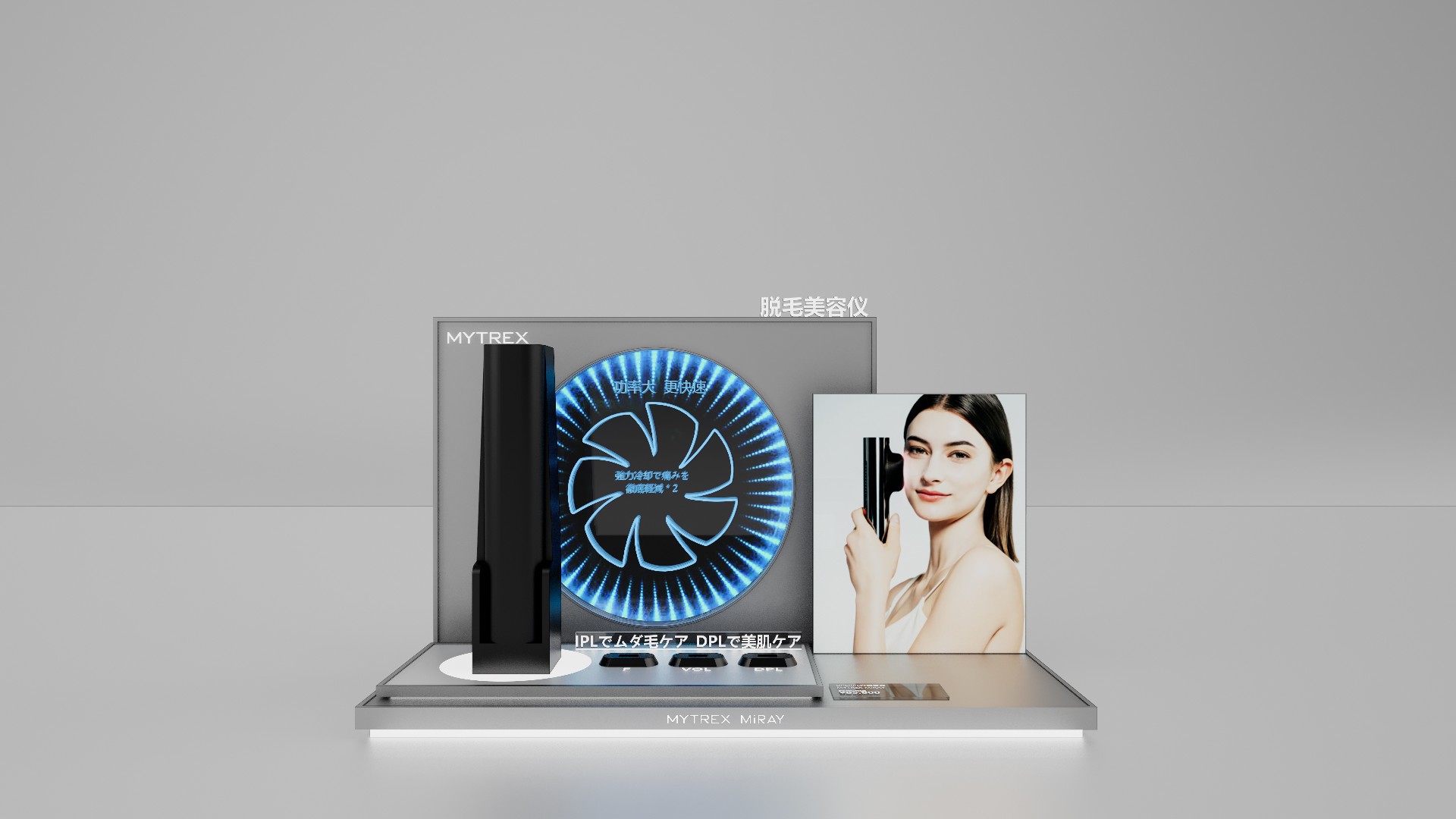 方世设计 携手MYTREX打造脱毛仪展示道具新标准,将消费者行为进行分层拆分,从发现→停留→拿起→体验→购买五个维度展示主推产品,在信息传达层级上完成直截了当的信息传达,加强了道具于产品卖点的充分可读性