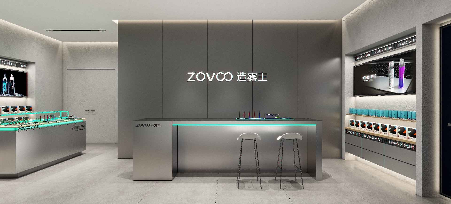 电子烟的品类大同小异,终端形象亦是如此,因此,方世设计携手「ZOVOO·造雾主」建立造物体验式零售形象,从三个策略出发:①主题感设计打破常规,创造记忆点。②个性潮酷的展陈方式,体验与展示相结合 。③模块化设计,利于延展和施工。